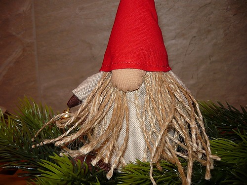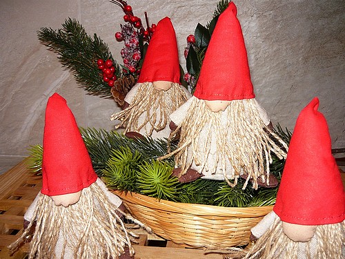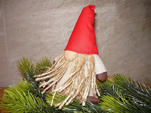 Dekorace šitého skřítka s fousy a rolničkou Vám bude dělat společnost o vánočních svátcích